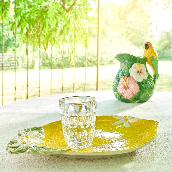 Skab en frisk og sommerlig stemning på bordet med dette dekorative fad formet som en citron. Den varme, gule glasur kombineret med fine detaljer i blade og blomster giver fadet et livligt og charmerende udtryk, der straks leder tankerne mod sol og sydlandske himmelstrøg.