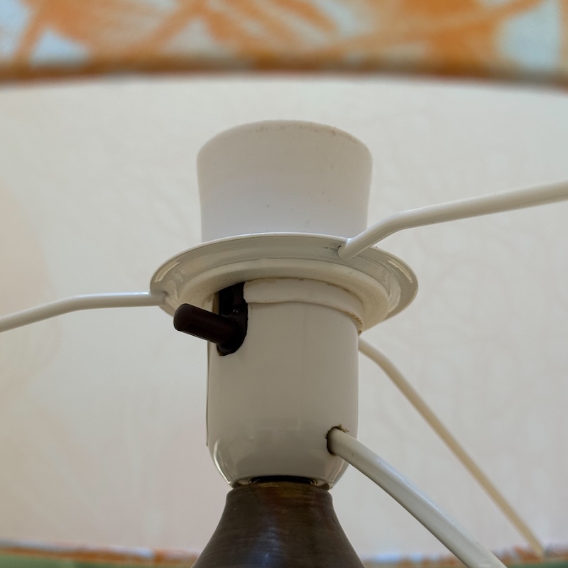Vintage bordlampe i glas med orange blomst – H41 cm