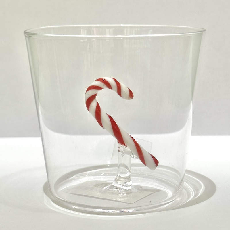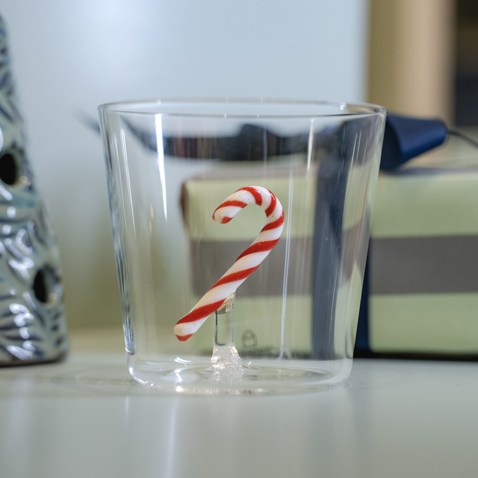 Et julet glas med en fin rød/hvid slikstok. Brug som vandglas på julebordet og lad hygge begynde.