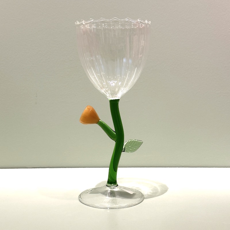 Håndlavet italiensk vinglas med ravfarvet blomst.