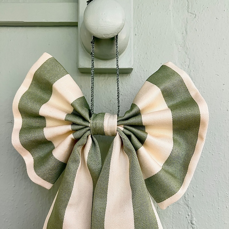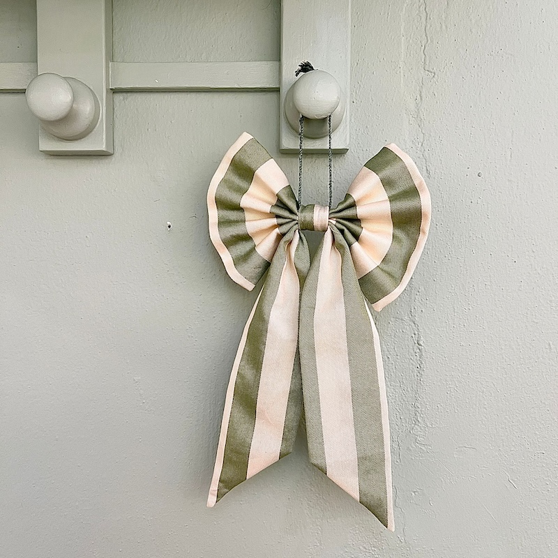 Sløjfen kan nemt hænges på en knage, en dør, et gardin eller bruges som pynt på børneværelset, til særlige anledninger eller som en kreativ dekoration i jule- og festpynt.