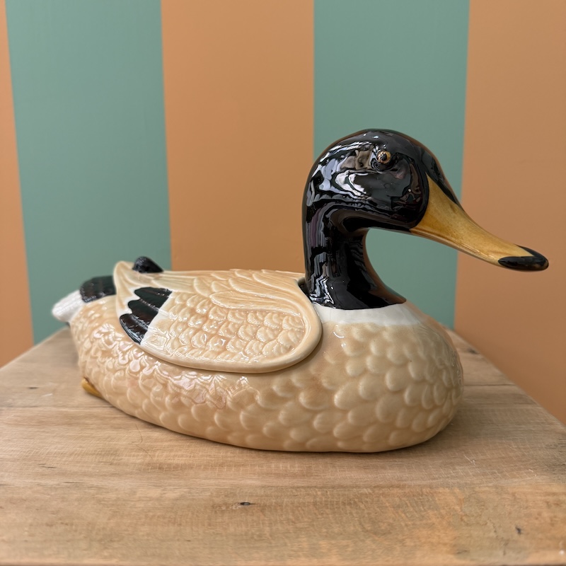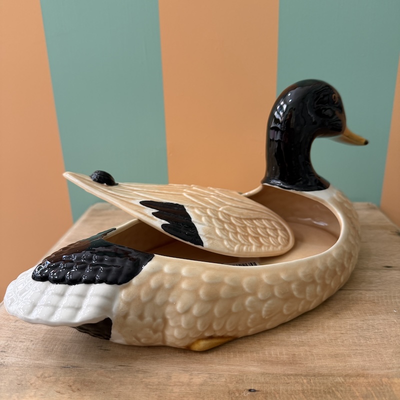 Virkelig fin and - Meget charmerende - Brug den til pynt eller opbevar småting i den - Plant karse i ryggen og lad den pynte på frokostbordet.