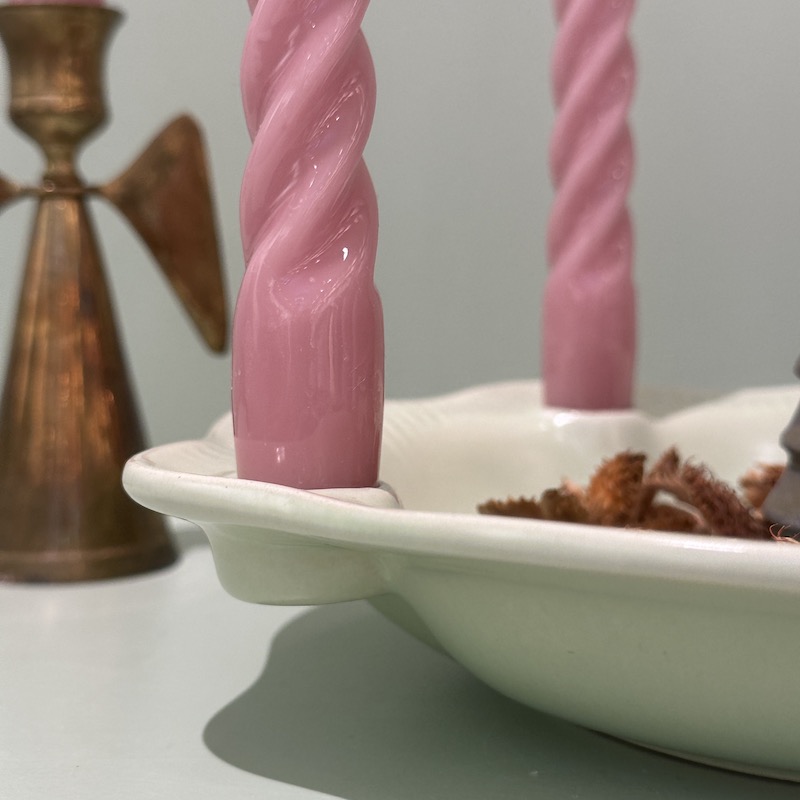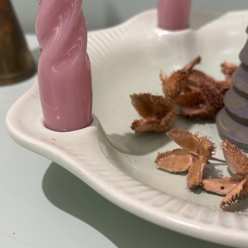 Dekorativ adventsstage i keramik - Der er plads til at pynte med grønt eller andre fine ting i midten. Beregnet til alm kronelys. Stagen er tysk og angiveligt fra 50érne.