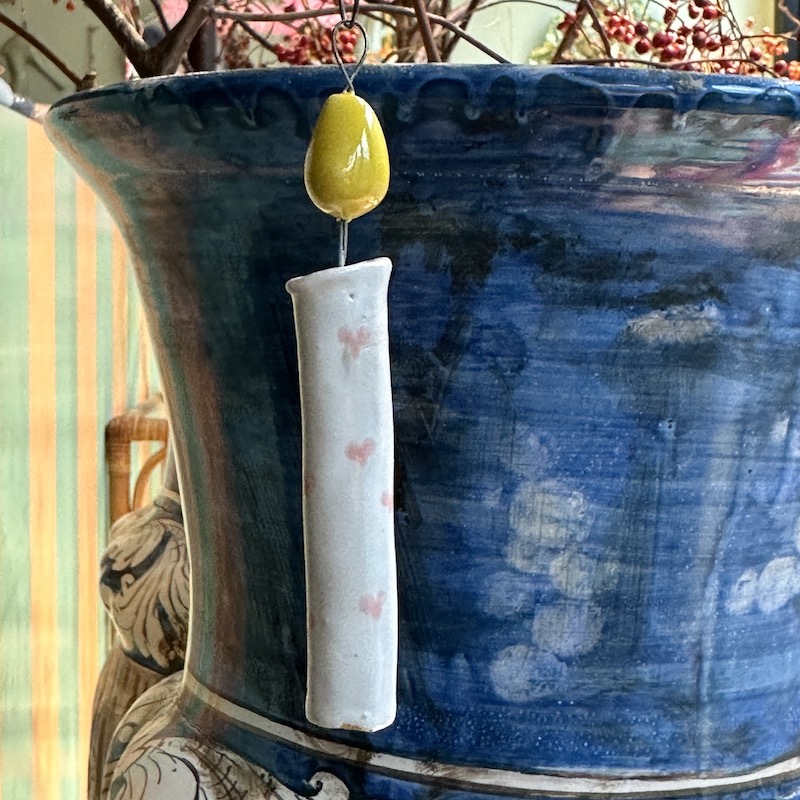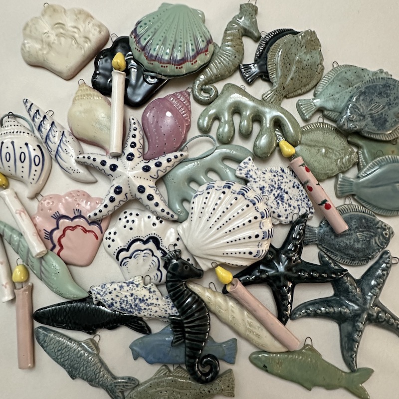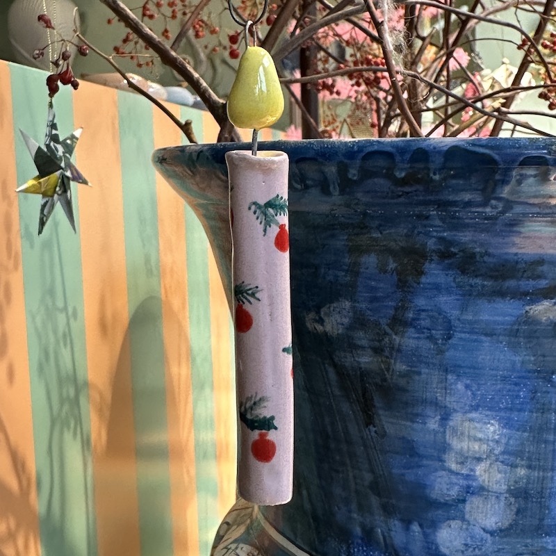 Håndlavet keramik julelys, der aldrig brænder ned, men pakkes ned og op sammen med julepynts samlingen. Alle lysene falder forskelligt ud, da de er håndlavet og håndmalet.