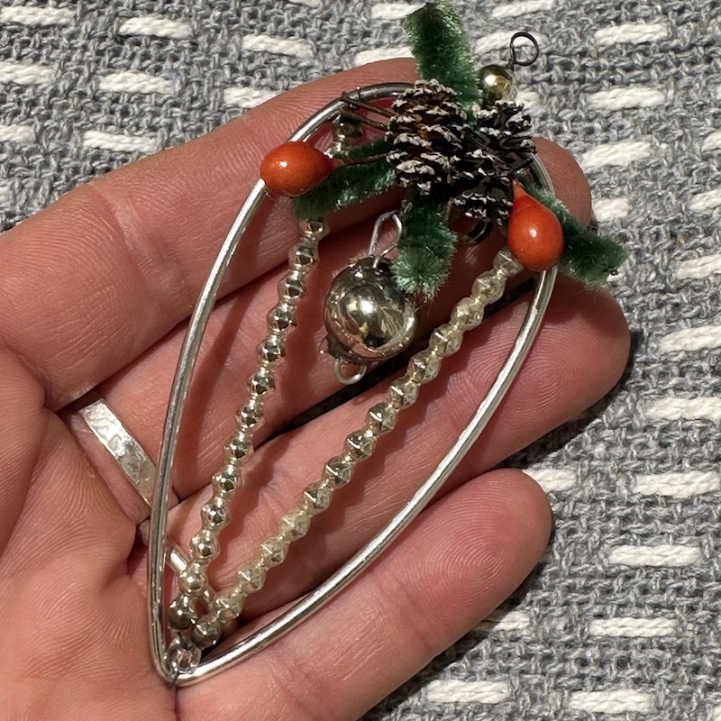 Antik Gablonz julepynt bestående af små mundblæste glasdele og natur materialer - Stilen er helt klassisk for Gablonz pynt - L9 cm