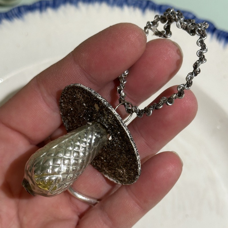 Antik Gablonz julepynt bestående af små mundblæste glasdele, metal og pap - Stilen er helt klassisk for Gablonz pynt - L9 cm