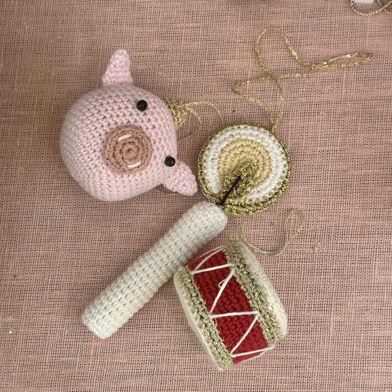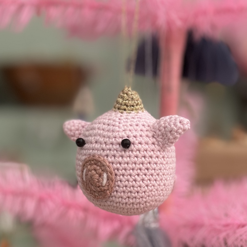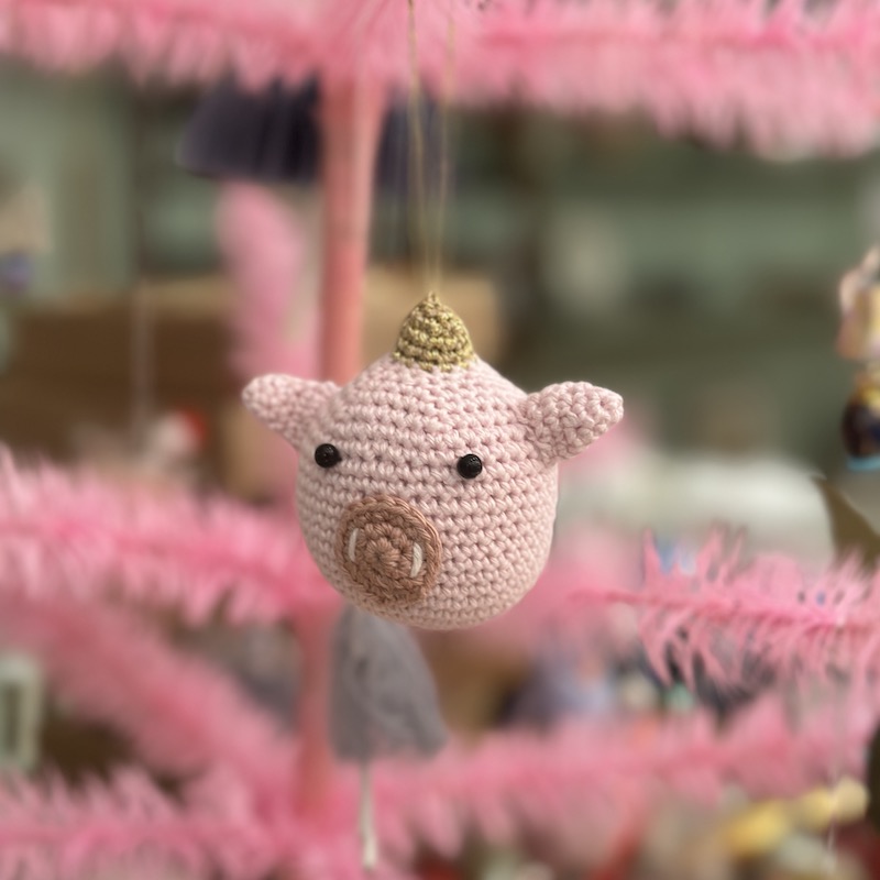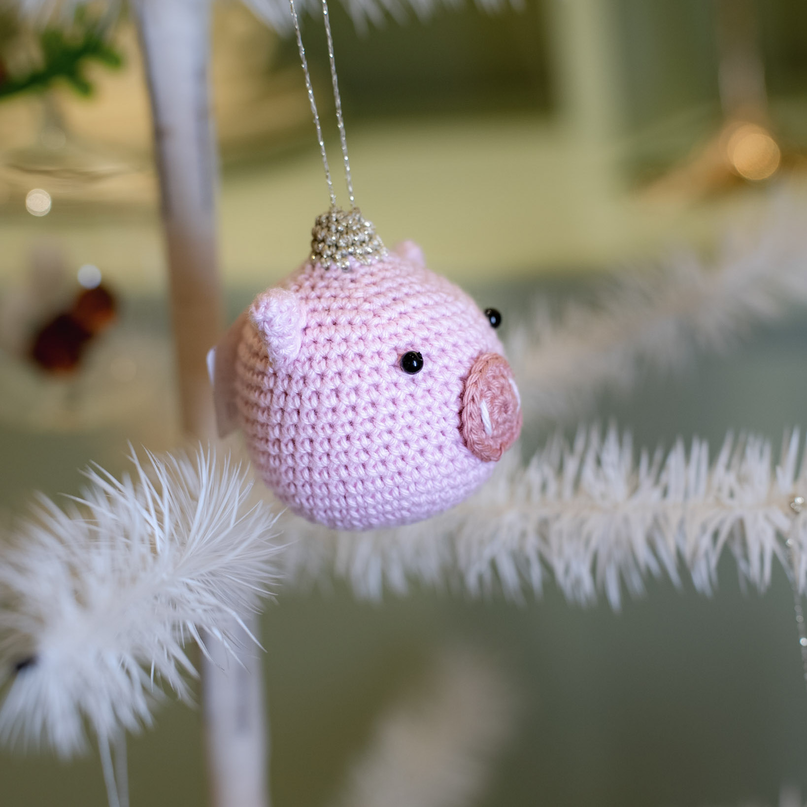 Skøn julegris hæklet i hånden i Danmark. Så fin på juletræet og genial som mandelgave istedet for den klassiske gris i marcipan.
