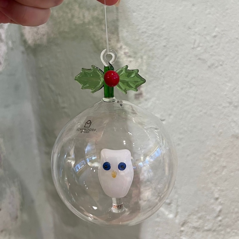 Pynt juletræet med håndlavede italienske julekugler - Her med en hvid ugle.