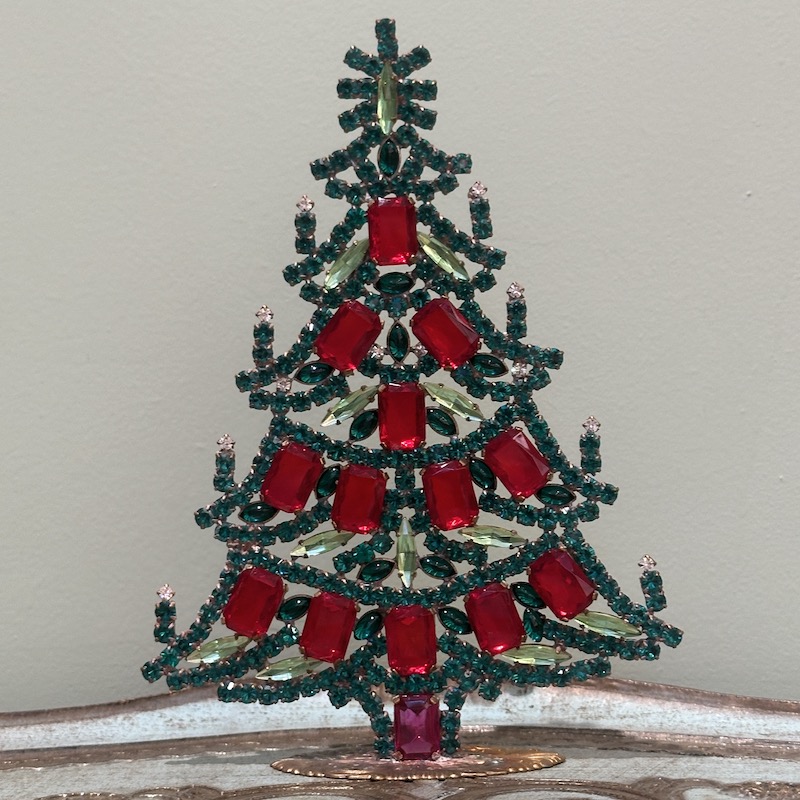 Rhinstens juletræ, Traditionen tro er julen grøn og rød, 16 cm