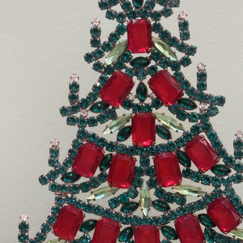 Vi har gennem alle årene haft de fine rhinstens juletræer fra Tjekkiet, hvor de i dag samles i hånden og er et fint stykke kunsthåndværk - Rhinstenene er fra før 2. verdenskrig og er fra de gamle smykkeværksteder, der blev forladt i efterkrigstiden. Derefter stod de urørte i mange år indtil man begyndte at købe de gamle sten op slut 80érne og begyndte af skabe de smukke træer, hvor foden er bagpladen af en broche. I dag sælges de smukke træer mange steder i verden og er efterhånden blevet et samlerobjekt, da mange af træerne er unika. Flere af vores kunder har efterhånden en hel rhinstens skov af juletræer, der findes frem år efter år og hvert år vælges et nyt til samlingen
