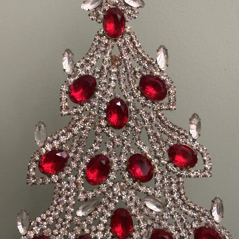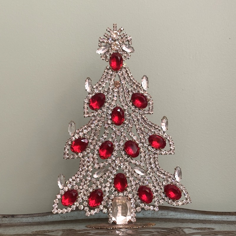 Vi har gennem alle årene haft de fine rhinstens juletræer fra Tjekkiet, hvor de i dag samles i hånden og er et fint stykke kunsthåndværk - Rhinstenene er fra før 2. verdenskrig og er fra de gamle smykkeværksteder, der blev forladt i efterkrigstiden. Derefter stod de urørte i mange år indtil man begyndte at købe de gamle sten op slut 80érne og begyndte af skabe de smukke træer, hvor foden er bagpladen af en broche. I dag sælges de smukke træer mange steder i verden og er efterhånden blevet et samlerobjekt, da mange af træerne er unika. Flere af vores kunder har efterhånden en hel rhinstens skov af juletræer, der findes frem år efter år og hvert år vælges et nyt til samlingen