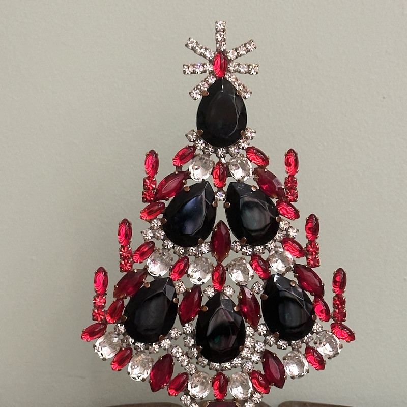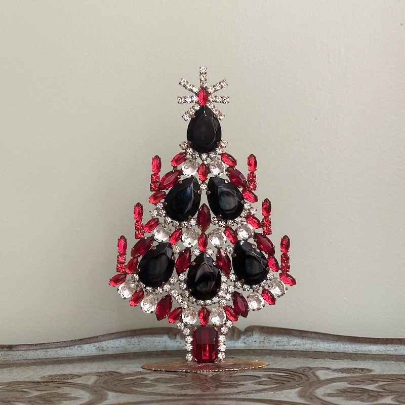 Vi har gennem alle årene haft de fine rhinstens juletræer fra Tjekkiet, hvor de i dag samles i hånden og er et fint stykke kunsthåndværk - Rhinstenene er fra før 2. verdenskrig og er fra de gamle smykkeværksteder, der blev forladt i efterkrigstiden. Derefter stod de urørte i mange år indtil man begyndte at købe de gamle sten op slut 80érne og begyndte af skabe de smukke træer, hvor foden er bagpladen af en broche. I dag sælges de smukke træer mange steder i verden og er efterhånden blevet et samlerobjekt, da mange af træerne er unika. Flere af vores kunder har efterhånden en hel rhinstens skov af juletræer, der findes frem år efter år og hvert år vælges et nyt til samlingen