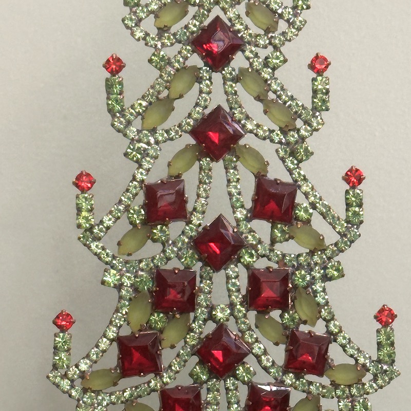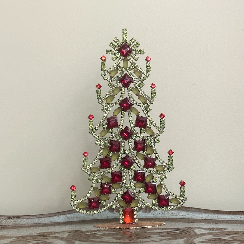 Vi har gennem alle årene haft de fine rhinstens juletræer fra Tjekkiet, hvor de i dag samles i hånden og er et fint stykke kunsthåndværk - Rhinstenene er fra før 2. verdenskrig og er fra de gamle smykkeværksteder, der blev forladt i efterkrigstiden. Derefter stod de urørte i mange år indtil man begyndte at købe de gamle sten op slut 80érne og begyndte af skabe de smukke træer, hvor foden er bagpladen af en broche. I dag sælges de smukke træer mange steder i verden og er efterhånden blevet et samlerobjekt, da mange af træerne er unika. Flere af vores kunder har efterhånden en hel rhinstens skov af juletræer, der findes frem år efter år og hvert år vælges et nyt til samlingen