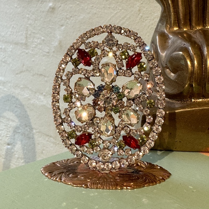 Påskeæg har altid været en del af vores påsketradition og vi finder dem i haven, bruger dem til pynt og spiser dem fyldt med lækkert marcipan eller andre gode ting. Her et smukt æg, håndlavet i Tjekkiet efter de gamle metoder og med gamle Rhinsten.