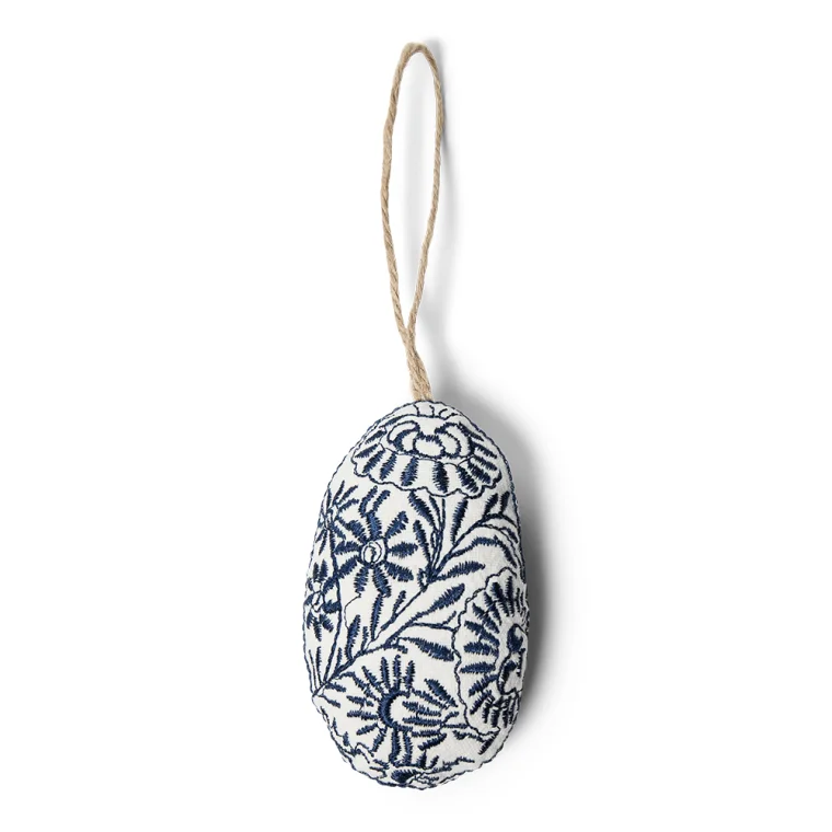 Pyntet kommer i en fin broderet stofpose, så de kan opbevares sikkert fra år til år.