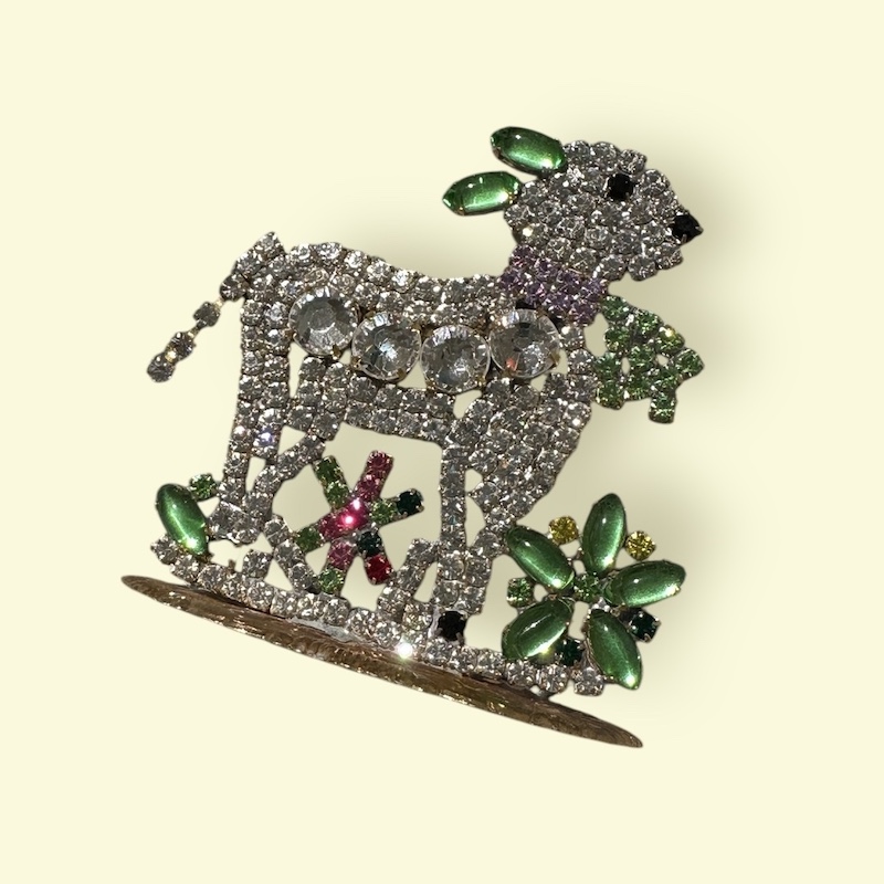 Små lam har altid været en del af vores påsketradition og vi bruger dem som motiv på servietter og andet påskepynt. Her et smukt lam, håndlavet i Tjekkiet efter de gamle metoder og med gamle Rhinsten.