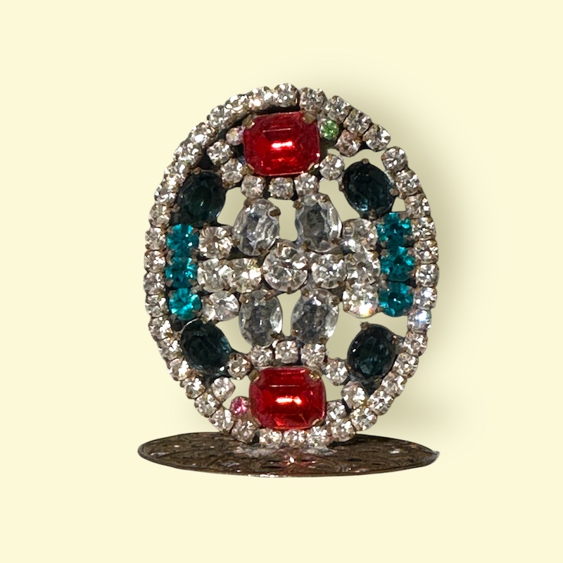 Påskeæg har altid været en del af vores påsketradition og vi finder dem i haven, bruger dem til pynt og spiser dem fyldt med lækkert marcipan eller andre gode ting. Her et smukt æg, håndlavet i Tjekkiet efter de gamle metoder og med gamle Rhinsten.