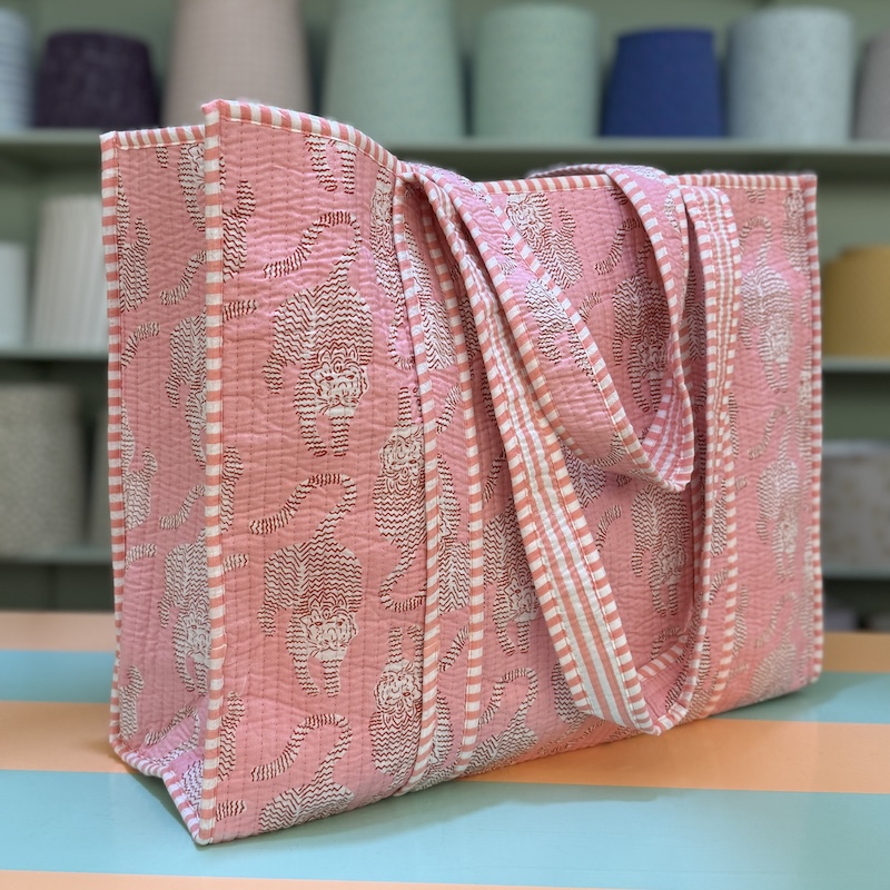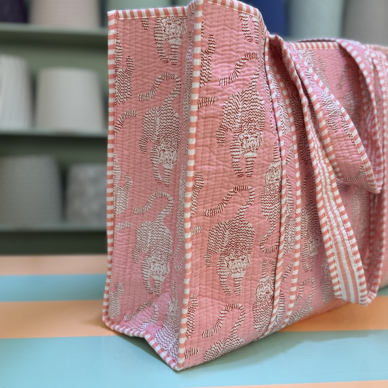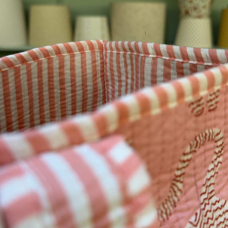 Syet med omhu og opmærksomhed på alle detaljer. Kantbåndet på alle syninger giver ekstra styrke og vatteringen giver struktur til tasken, så den er sikker på at kunne modstå daglig brug. Ydermere har den en lille praktisk inderlomme, der kan holde styr på dine småting. De to hanke er ca 35cm lange og gør at tasken hviler godt på skulderen.