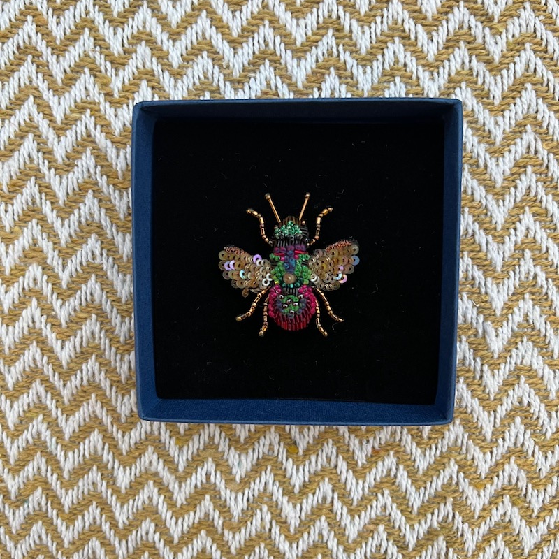 Trovelore håndbroderede brocher er lavet af de fineste kvaliteter og kun efter ordre for på den måde at undgå overproduktion. Det ældgamle håndværk er ved at forsvinde og derfor støtter Trovelore lokale kvinder i Indien, hvor denne fine form for smykker stadig laves - Kvaliteten er uovertruffen og hver broche har de fineste detaljer af tråd, palietter og perler. Alt er skabt i hånden med sans for detaljerne og det gamle håndværk. Når du køber en Trovelore broche køber du også et lille fint stykke kunst.