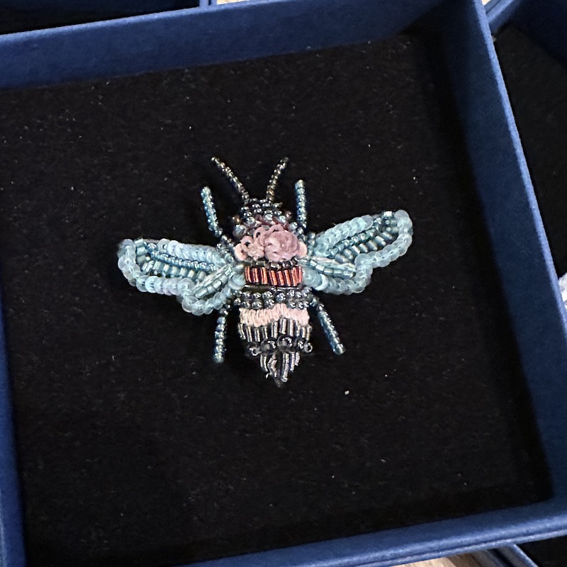 Trovelore håndbroderede brocher er lavet af de fineste kvaliteter og kun efter ordre for på den måde at undgå overproduktion. Det ældgamle håndværk er ved at forsvinde og derfor støtter Trovelore lokale kvinder i Indien, hvor denne fine form for smykker stadig laves - Kvaliteten er uovertruffen og hver broche har de fineste detaljer af tråd, palietter og perler. Alt er skabt i hånden med sans for detaljerne og det gamle håndværk. Når du køber en Trovelore broche køber du også et lille fint stykke kunst.