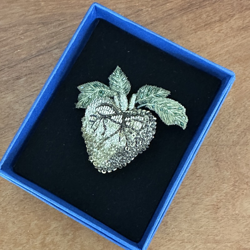 Trovelore håndbroderede brocher er lavet af de fineste kvaliteter og kun efter ordre for på den måde at undgå overproduktion. Det ældgamle håndværk er ved at forsvinde og derfor støtter Trovelore lokale kvinder i Indien, hvor denne fine form for smykker stadig laves - Kvaliteten er uovertruffen og hver broche har de fineste detaljer af tråd, palietter og perler. Alt er skabt i hånden med sans for detaljerne og det gamle håndværk. Når du køber en Trovelore broche køber du også et lille fint stykke kunst.