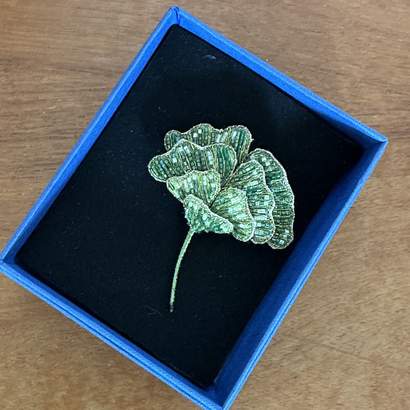 Trovelore håndbroderede brocher er lavet af de fineste kvaliteter og kun efter ordre for på den måde at undgå overproduktion. Det ældgamle håndværk er ved at forsvinde og derfor støtter Trovelore lokale kvinder i Indien, hvor denne fine form for smykker stadig laves - Kvaliteten er uovertruffen og hver broche har de fineste detaljer af tråd, palietter og perler. Alt er skabt i hånden med sans for detaljerne og det gamle håndværk. Når du køber en Trovelore broche køber du også et lille fint stykke kunst.