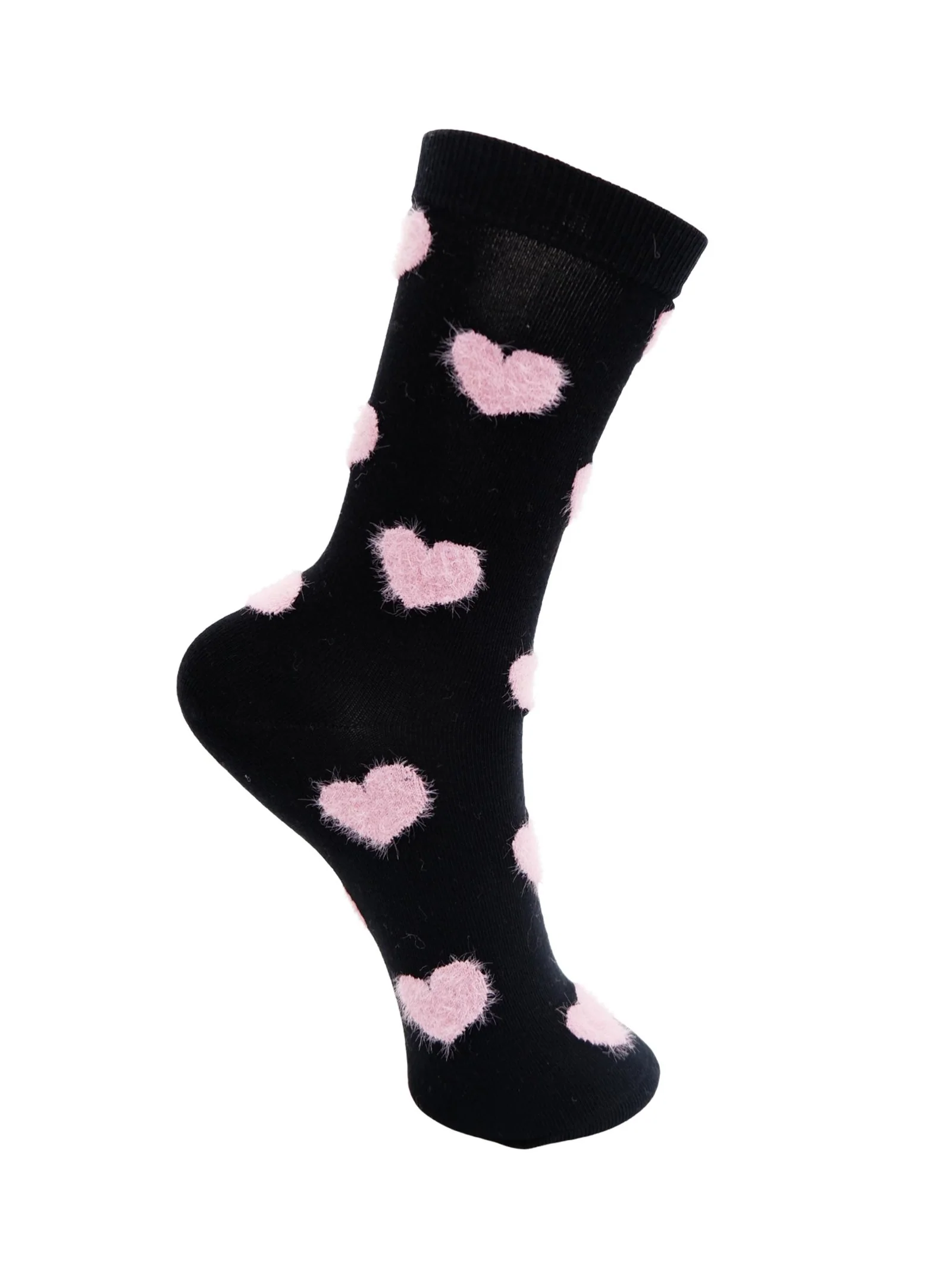 De sødeste strømper med store, bløde hjerter i kontrastfarver. De fluffy hjerter giver et legende og hyggeligt udtryk, mens den bløde bomuldsblanding sikrer komfort hele dagen. Perfekte til at tilføje lidt ekstra charme til dit outfit – både hjemme og ude.