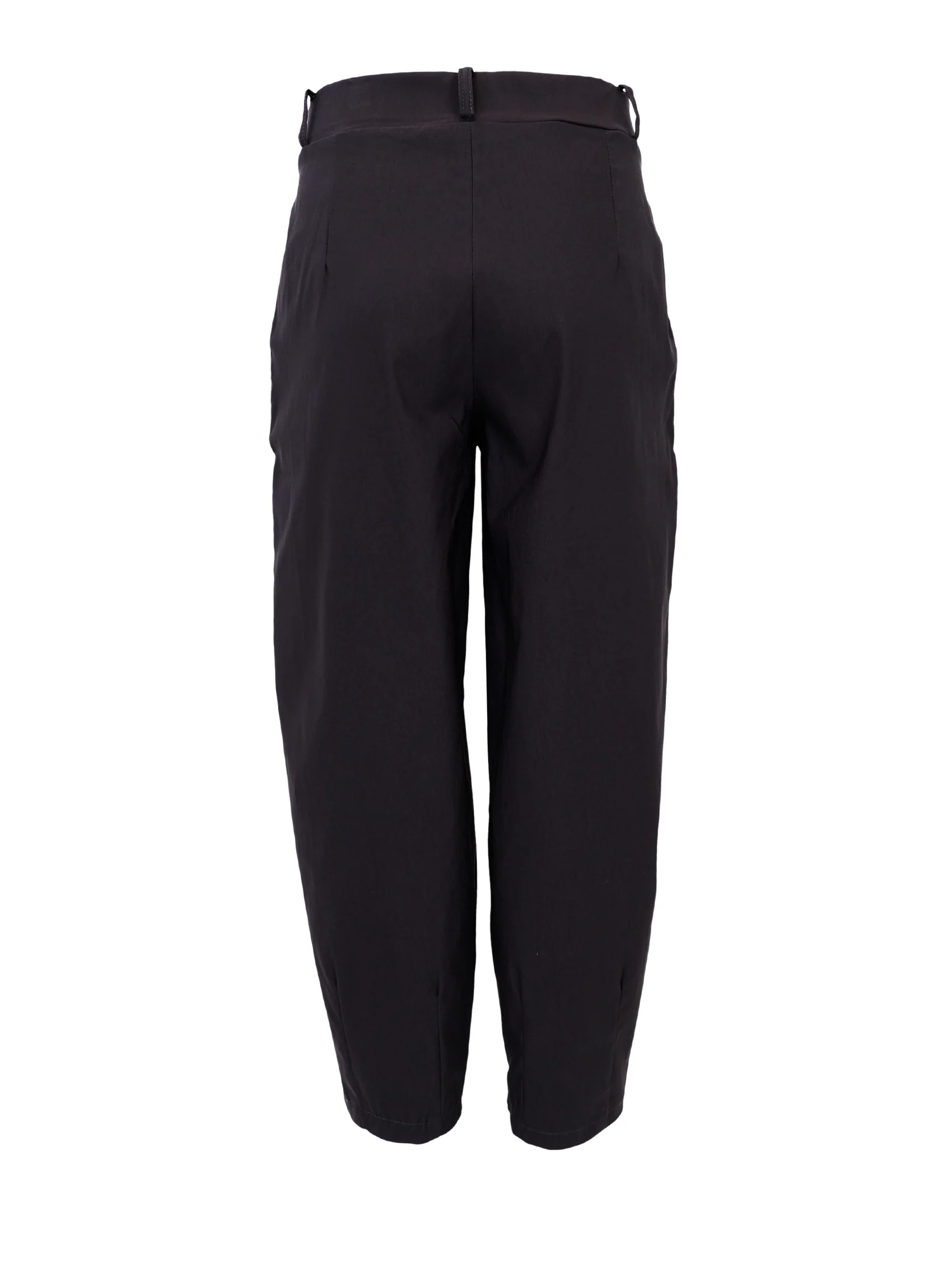 Beverly buksen er en stilren og moderne buks i sort med cropped benlængde og barrel pasform, der giver et trendy og sofistikeret udtryk. Den flatterende pasform kombineret med mellemhøj talje og bæltestropper gør dem ideelle til både hverdag og mere formelle lejligheder. Det strækbare materiale sikrer høj komfort hele dagen, mens det enkle design giver masser af stylingmuligheder.