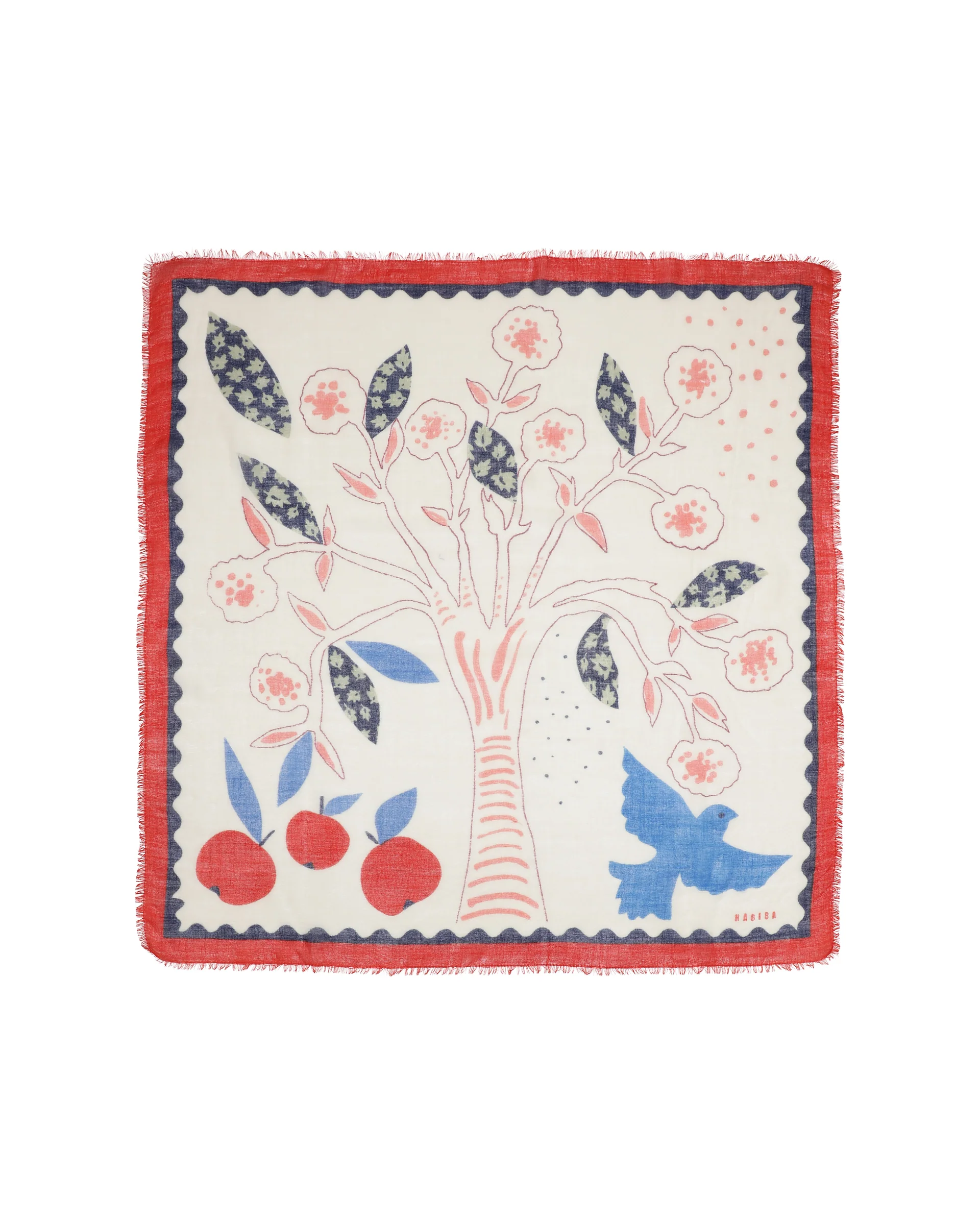 Bohemia er et signaturtørklæde med håndtegnet print og smukke farver – trykt på en eksklusiv, blød uldkvalitet med rå kanter. Et kunstnerisk design, der kan styles på utallige måder – om halsen, som accessorie i håret eller på tasken.