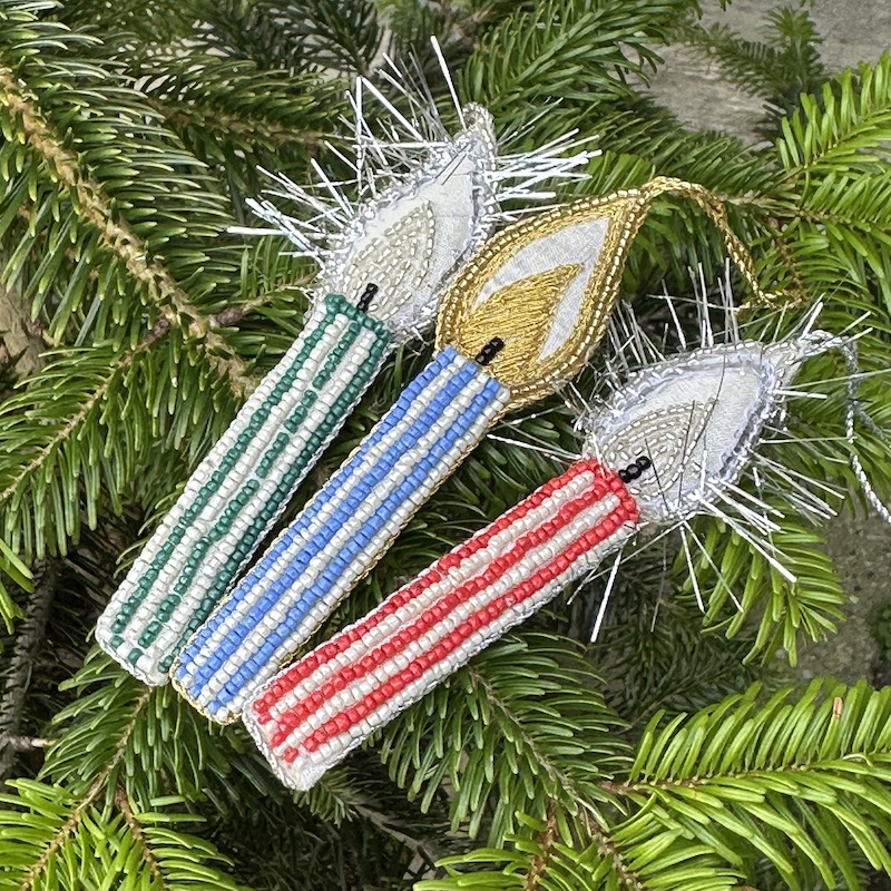 De små fine perlebesatte julelys fra Nynne Rosenvinge skaber hygge og julestemning - Brug dem på en buket grene i hele december inden de hænges på juletræet.