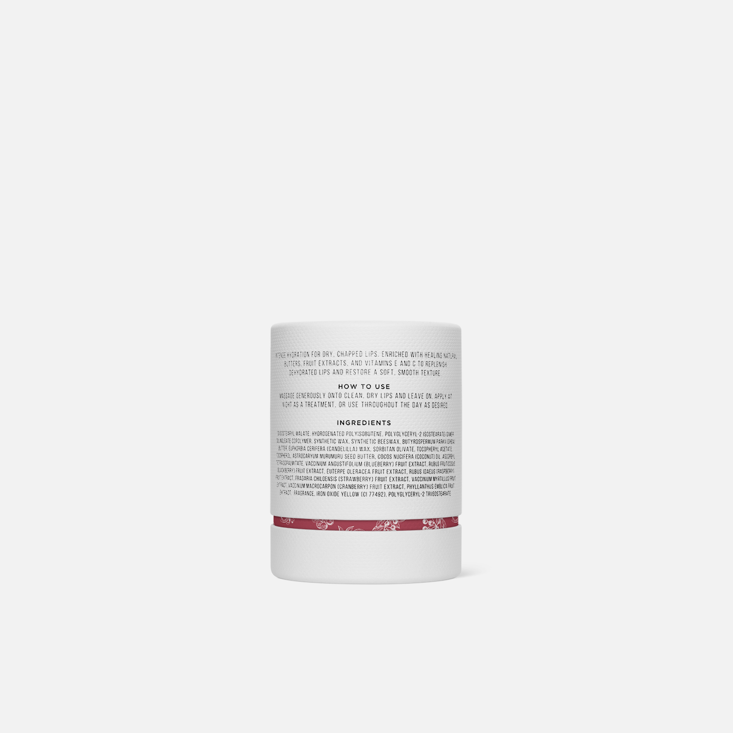 Masken indeholder en effektiv blanding af sheasmør, murumuru frøsmør, C- og E-vitamin samt frugt- og bærekstrakter, som fugter i dybden, reparerer og støtter læbernes naturlige fornyelsesproces. Den bløde, balm-lignende tekstur gør den let at påføre, og du vågner op med læber, der ser fyldigere, glattere og mere sunde ud.