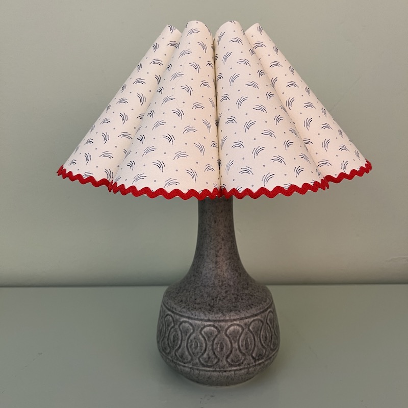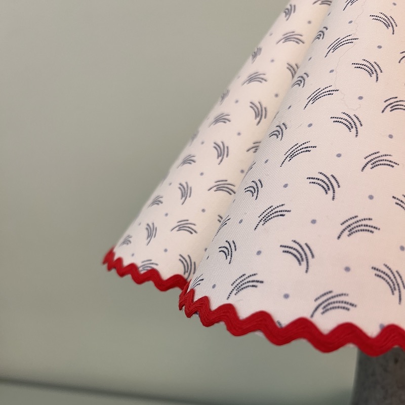 Bølgeskærm nr 1, Hvidt tekstil med blåt mønster og rød kant
