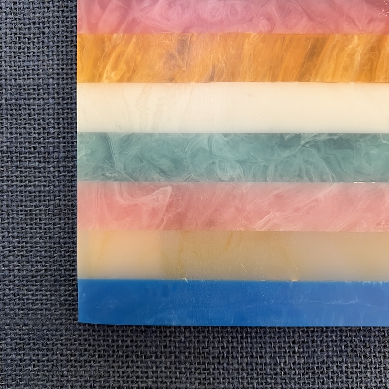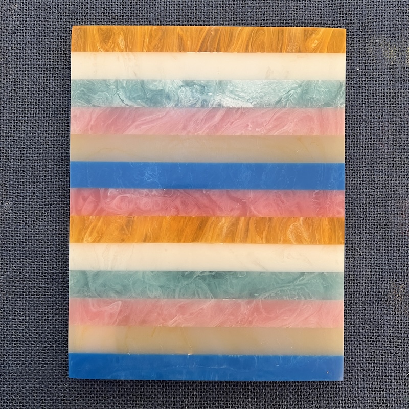 Dette smukke skærebræt kombinerer striber i bl.a. orange, blå og lyserød, som tilsammen skaber et friskt, farverigt og moderne udtryk. De levende mønstre i materialet giver hvert bræt sit helt eget præg.
