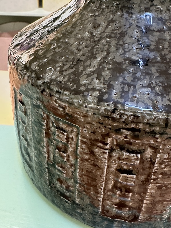 Palshus var et af Danmarks bedste keramik værksteder, hvor der også blev lavet lamper for blandt andre Le Klint. Her er det en klassisk chamotte lampe som er kendetegnede for Per Linnemand-Schmidt.