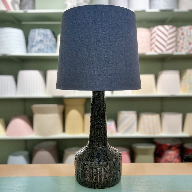 Indret med vintage lamper og skab en personlig og unik stil. Kombiner evt med en af vores håndlavede lampeskærme fra vores eget værksted i Helsingør - Her vist med lampeskærm i lækkert hør nr 440 - Der skal bruges et sæt recesringe for at vores skærme kan monteres på lampen.