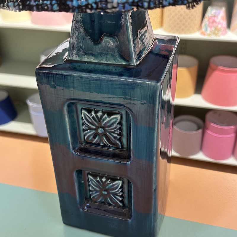Indret med vintage lamper og skab en personlig og unik stil. Kombiner evt med en af vores håndlavede lampeskærme fra vores eget værksted i Helsingør - Her vist med lampeskærm i lækkert Chanel tekstil - Der skal bruges et sæt recesringe for at vores skærme kan monteres på lampen.