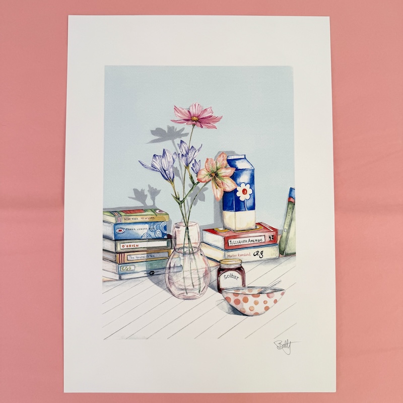 Print af Bettys originale akvarel billeder og perfekte til at give en stemning af dansk sommer og lyse sommeraftner.