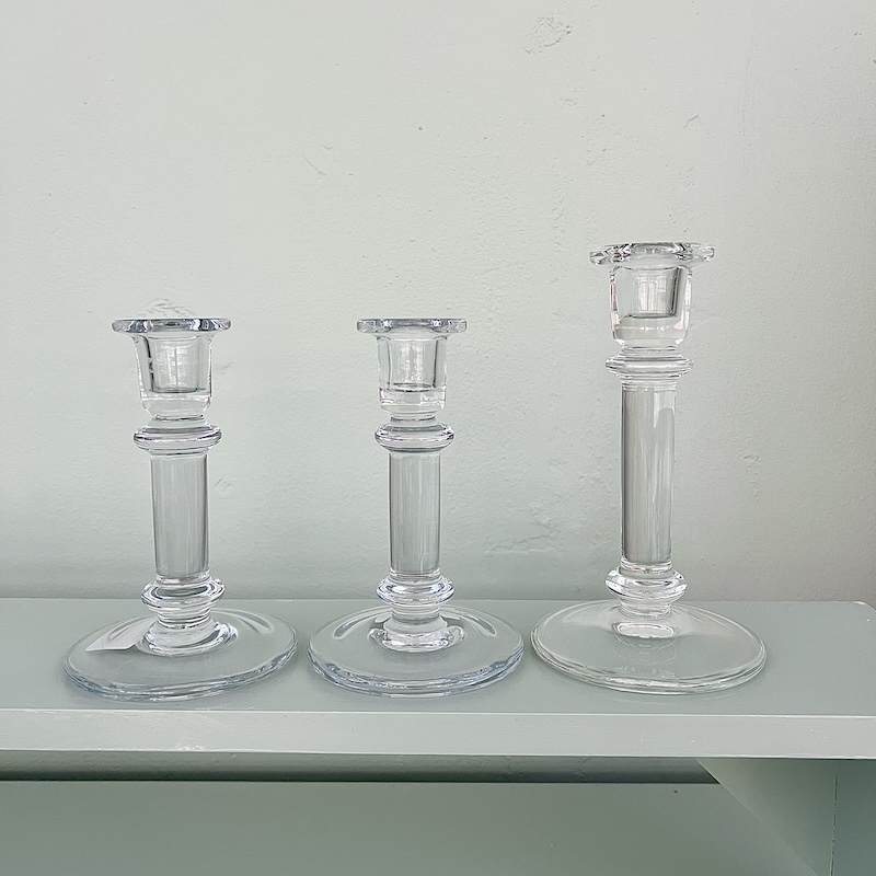 Vintage lysestager i glas – 2 varianter (H21 & H18)