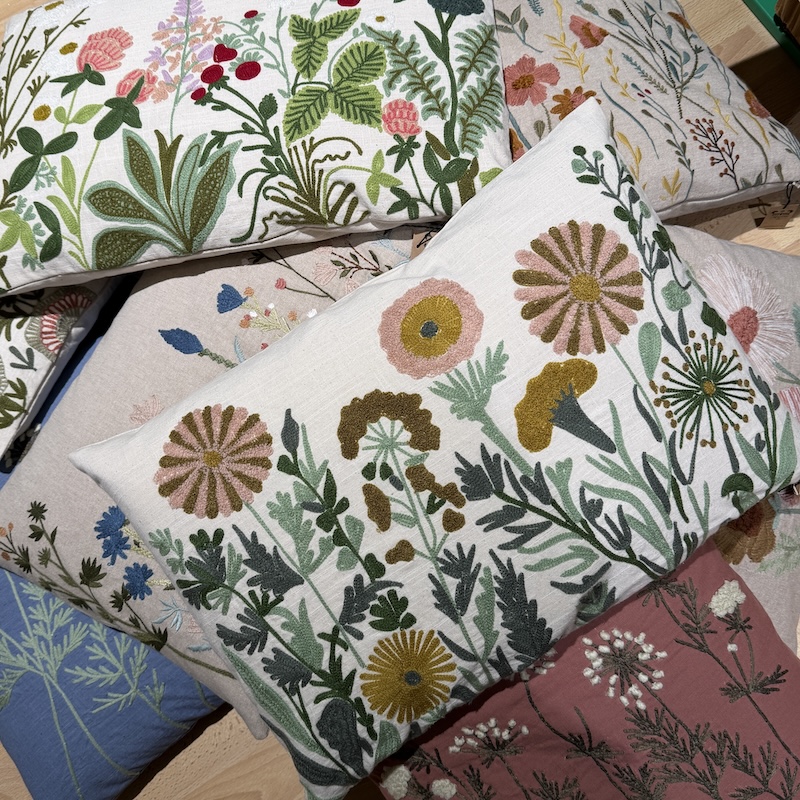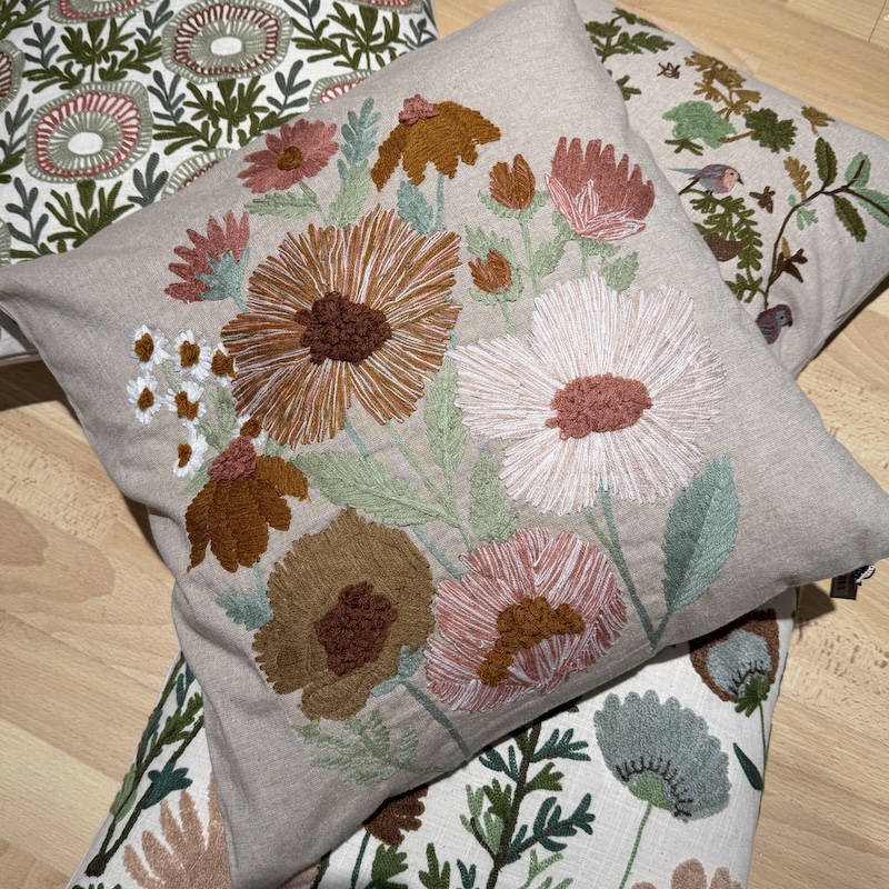 Skab en hyggelig stemning med de mange smukke puder med broderede blomster fra miljögården. Kombiner på kryds og tværs og få en stemning af hygge og sommer på terrassen, i stuen eller i ynglingsstolen.