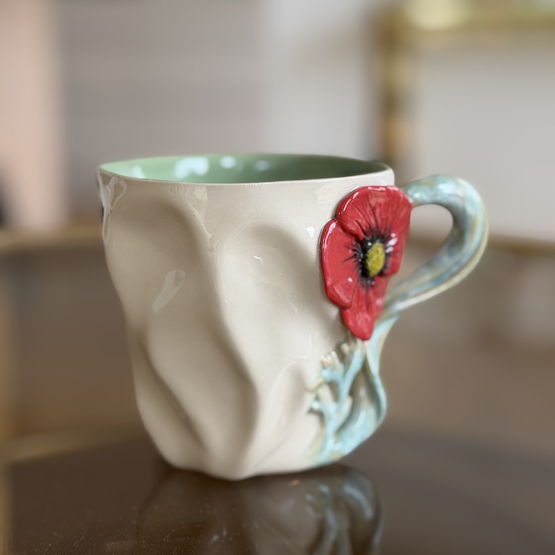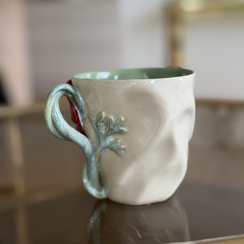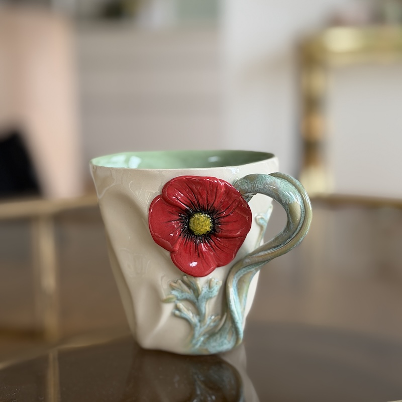 Kopserien fra Andrea Grandelag er smukke krøllekopper, der er dekoreret med de mest eventyrlige blomster - Alle blomster er lavet i hånden og ikke udstukket, hvilket gør hver enkelt kop helt unik. De smukke formede hanke, der udgør blomstens stilk giver en legende lethed og et drømmende udtryk - Kopperne er udsøgte og keramikkunst fra øverste hylde.
