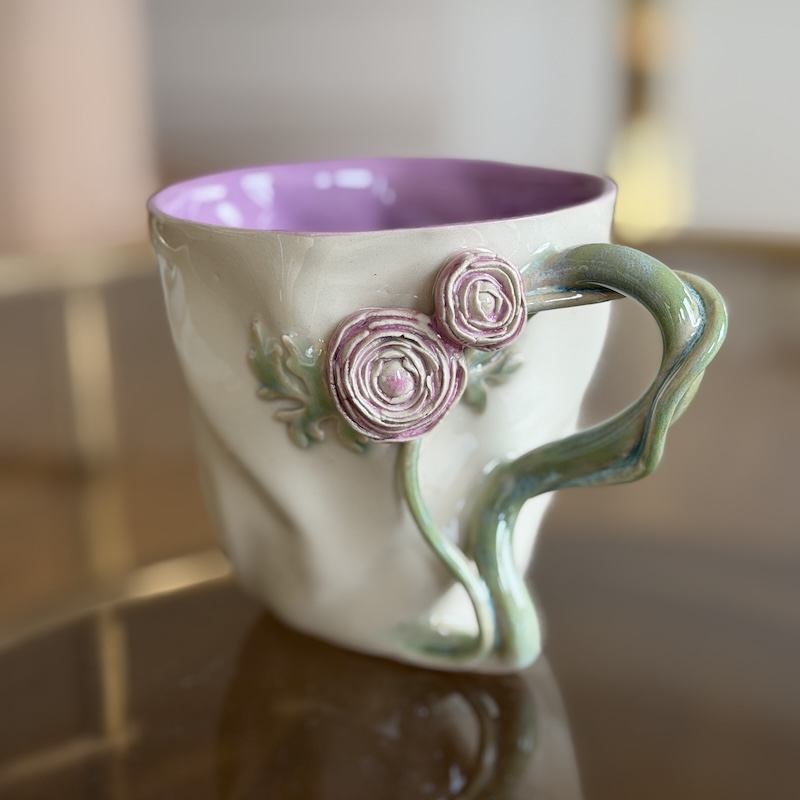 Kopserien fra Andrea Grandelag er smukke krøllekopper, der er dekoreret med de mest eventyrlige blomster - Alle blomster er lavet i hånden og ikke udstukket, hvilket gør hver enkelt kop helt unik. De smukke formede hanke, der udgør blomstens stilk giver en legende lethed og et drømmende udtryk - Kopperne er udsøgte og keramikkunst fra øverste hylde.