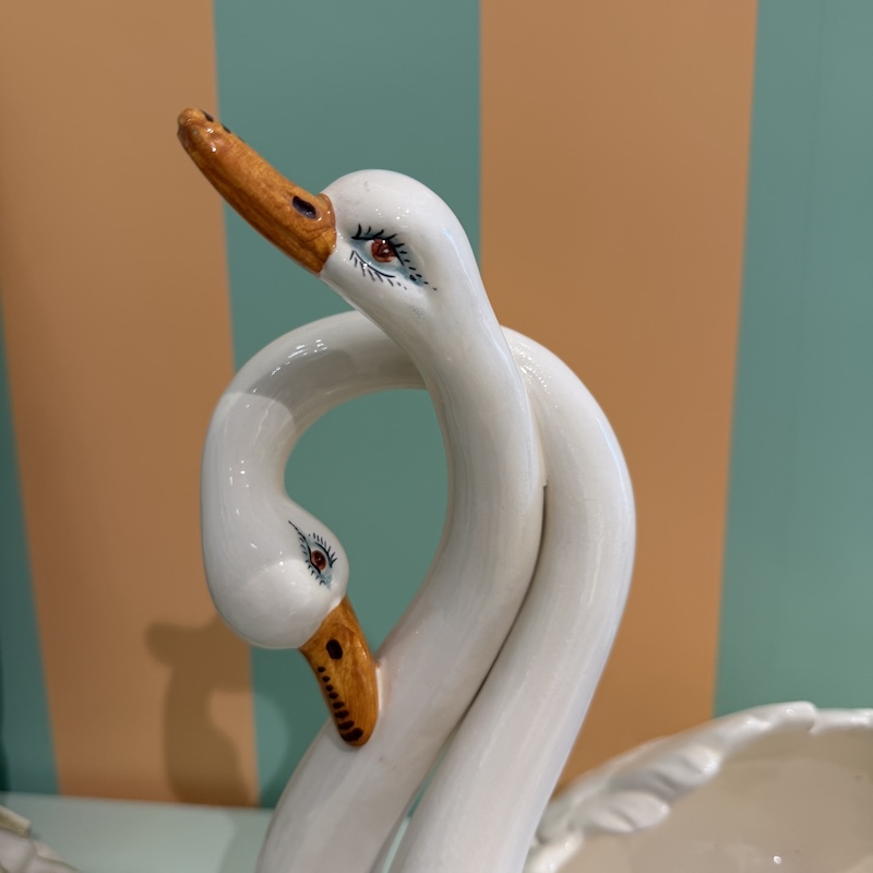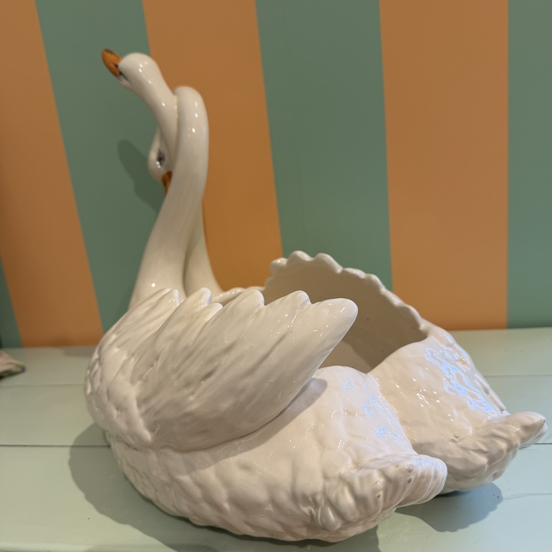 Ufattelig charmerende svaner med svungne halse og smukt udtryk - Sikkert en potte oprindeligt, men kan bruges som frugtskål eller lign - Vintage når det er bedst - Skab en smuk indretning med unikke fund.