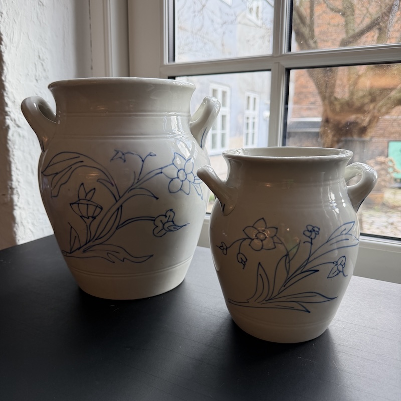 Smukke svenske hvide syltekrukker