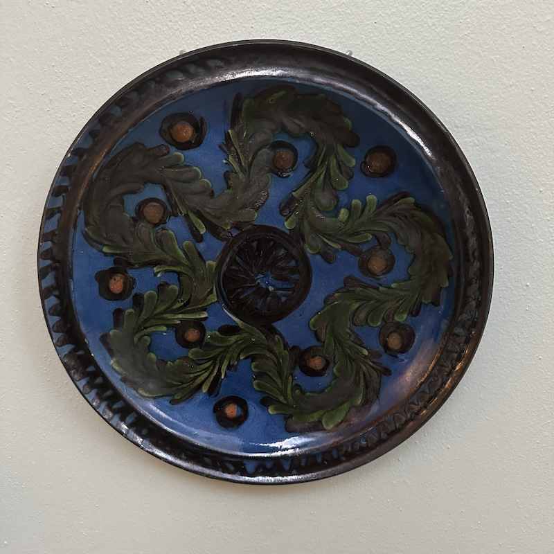 Gammel platte fra Kähler signeret HAK - Flot som indslag på en billedevæg eller som solo - Kan bruges som fad. Ophænget medfølger ikke men ligende kan købes hos din lokale marskandiser.