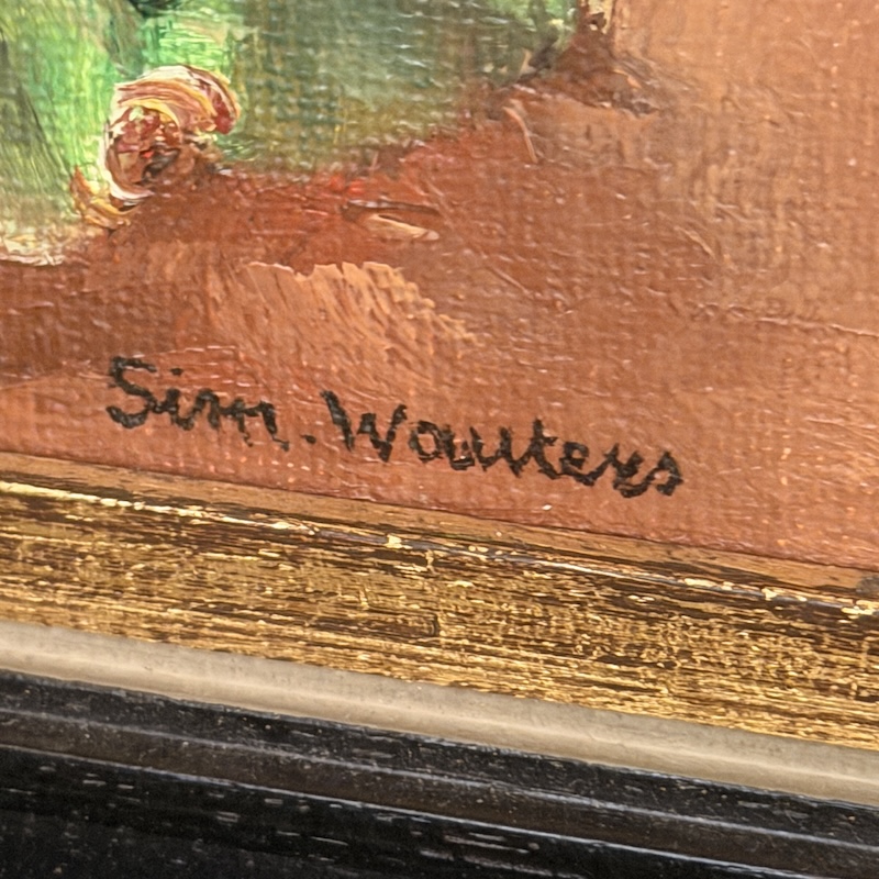 Vidunderligt maleri i smuk patineret træramme i sort og guld - Maleriet er signeret men signaturen af, for os, ukendt kunstner - Smukke blomster i gul. Maleriet er indrammet i sort malet træramme med guld detaljer, der er patineret meget smukt.