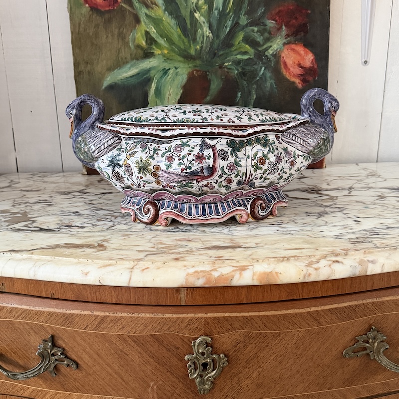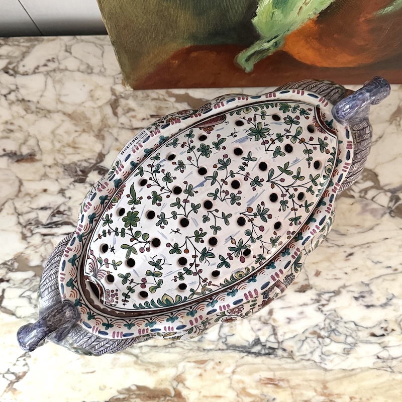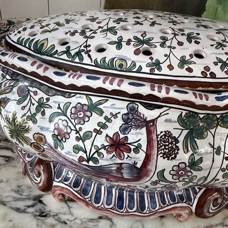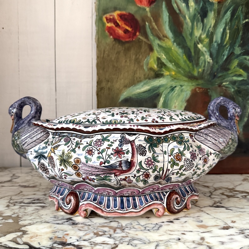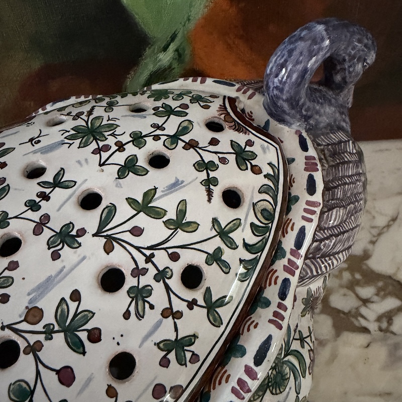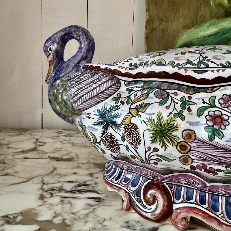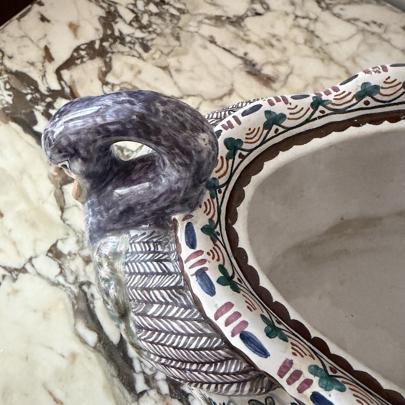 Flot centerpiece på bordet fyldt med afskårne blomster - Vintage. Håndmalet i Portugal og fantastisk udsmykket med svaner og påfugle. Gør din borddækning helt speciel eller placer den på en skænk og nyd den som den er.