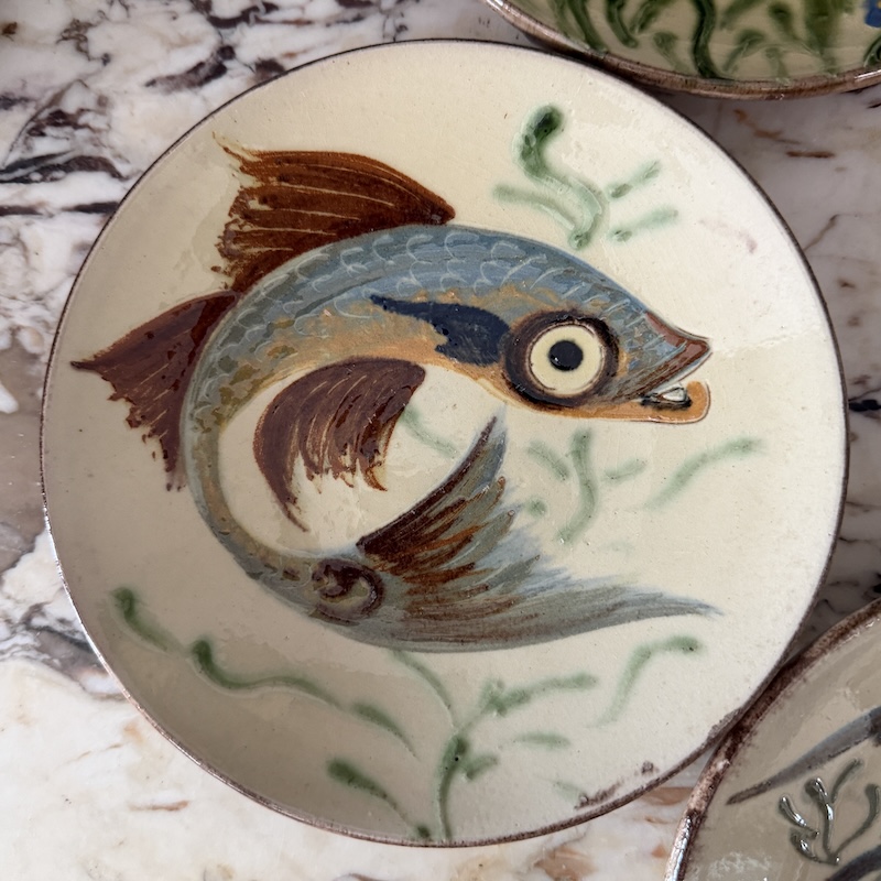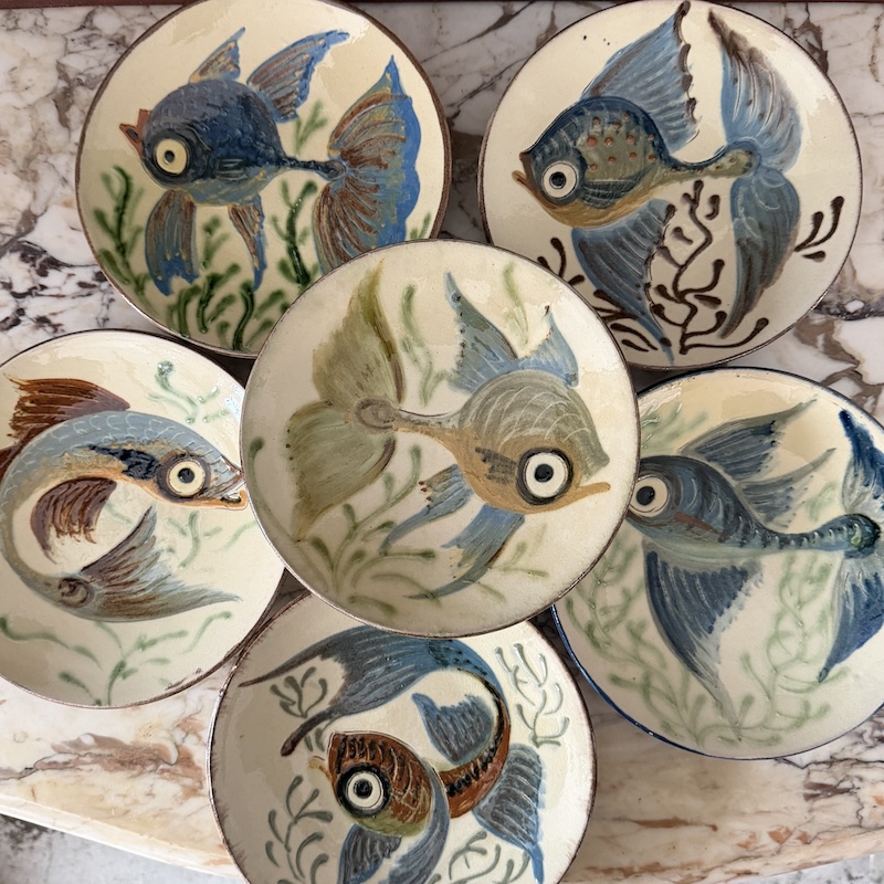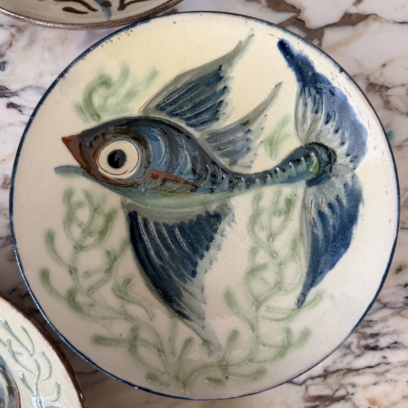 Alle platterne er signerede og skabt i 60érne hos Puigdemont Studio Art i Spanien - De finurlige fiskemotiver er meget smukke og flotte som en del af en billedevæg eller solo. Der er hul bagpå, så der nemt kan sættes snor i til ophæng på et søm. Alle platterne er signerede - Vær opmærksom på, at der er to størrelser.