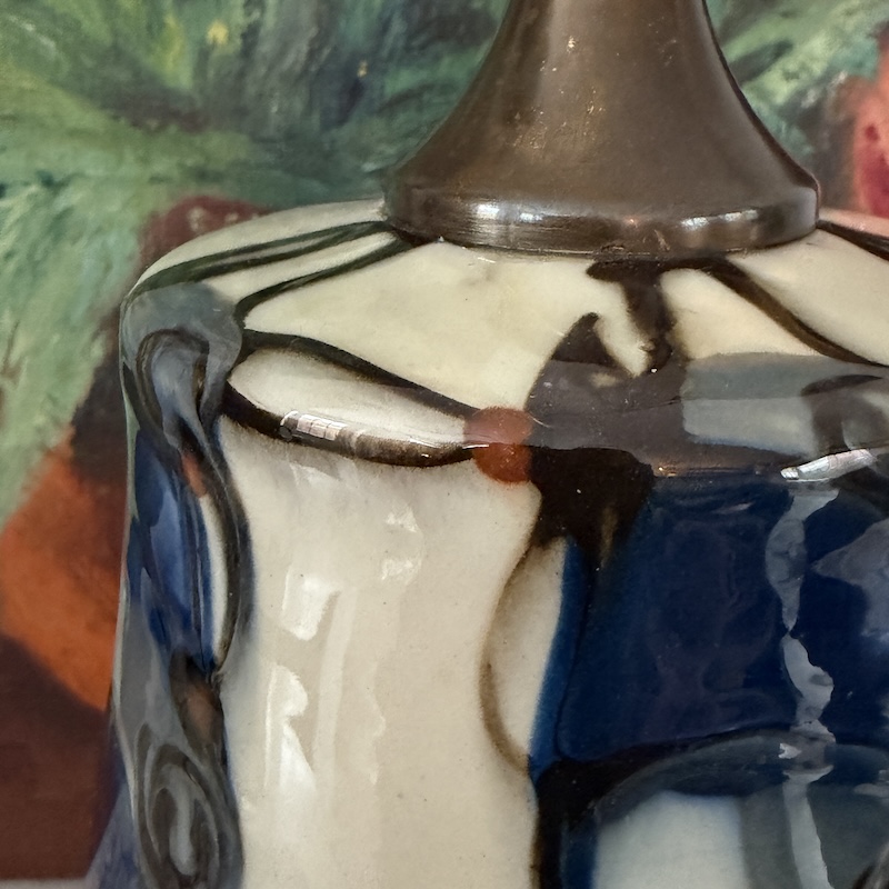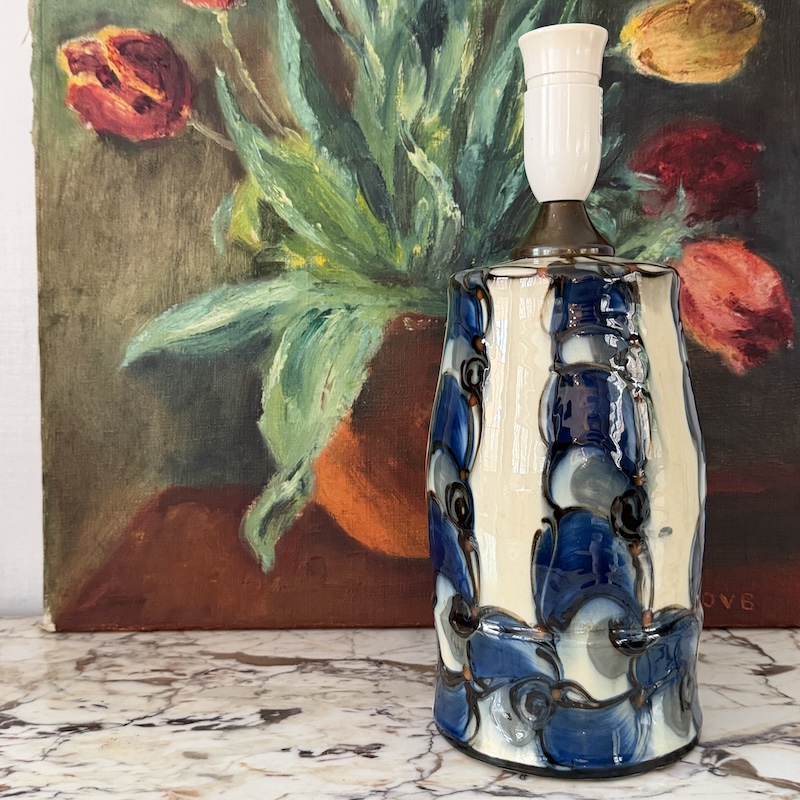 Stemplet og meget flot Danico bordlampe - Ingen afslag overhovedet, men et par krakeleringer - Sjældent at finde så flot en lampe med kohornsglasur.