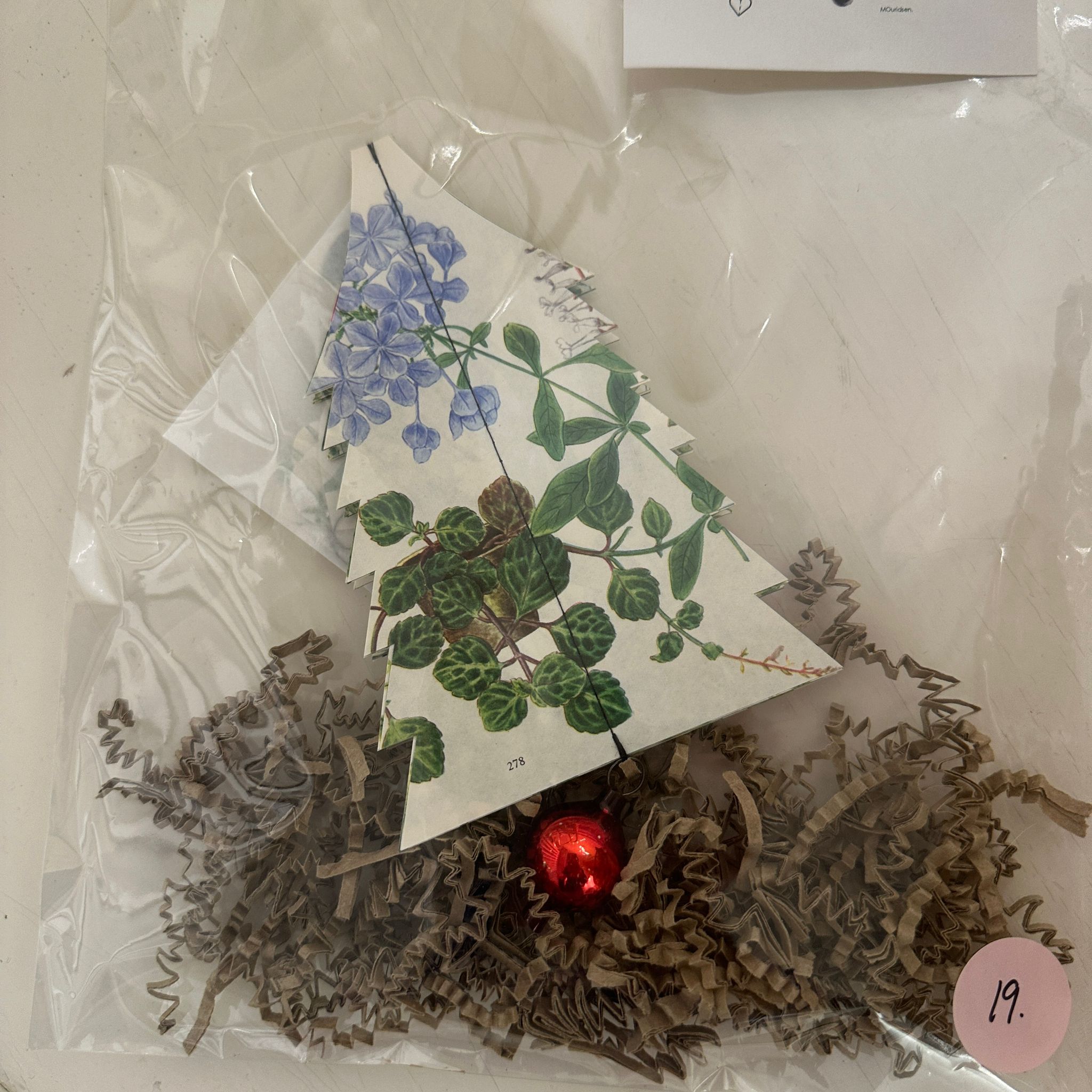 Juletræerne er lavet af gamle flora prints og den fine kugle, der hænger under træet er vintage. Træet er yndigt og fint når det hænger.