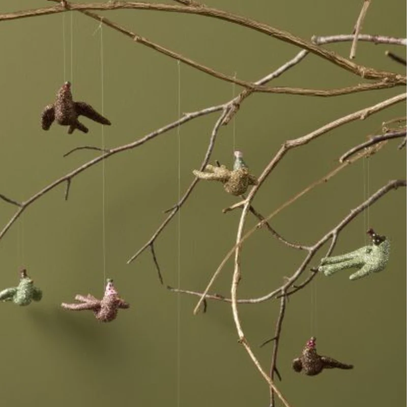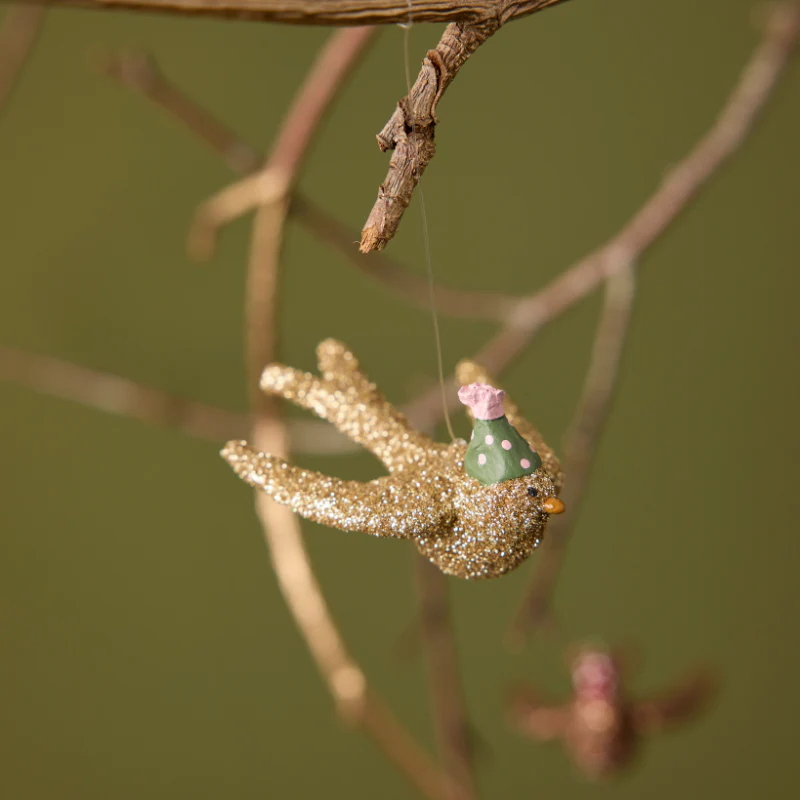 Elegant glimmerophæng til juletræet i from af guldfarvet due